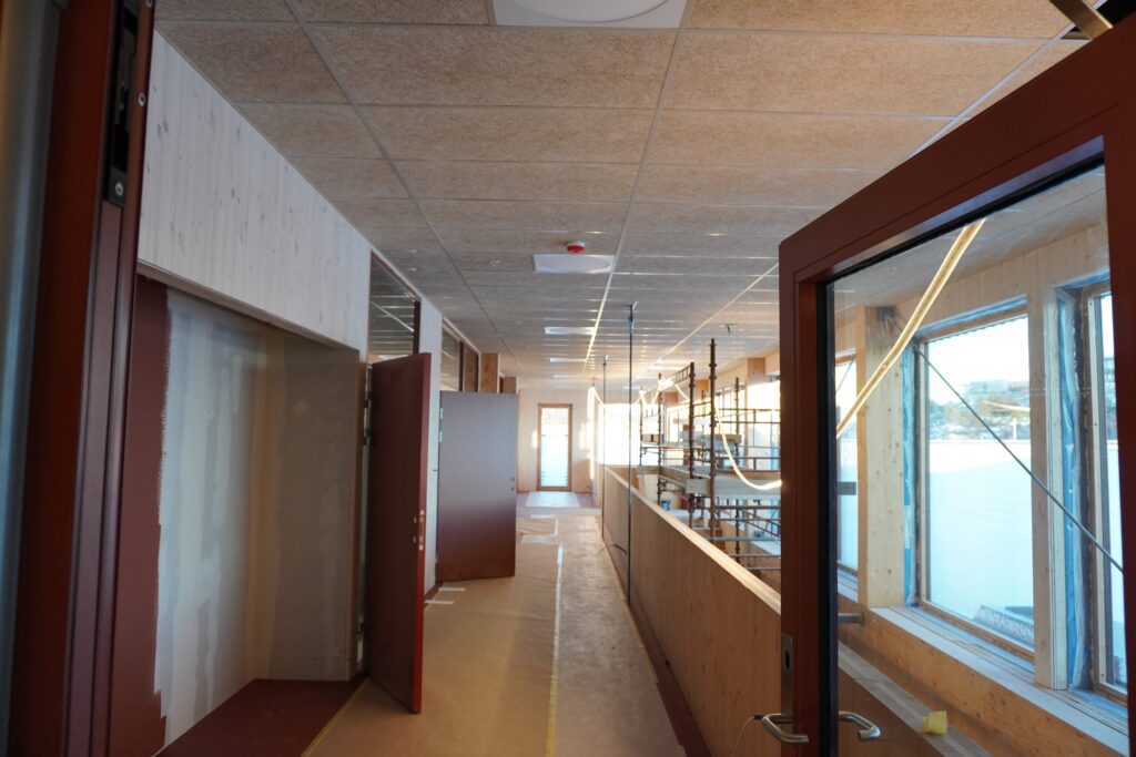 Stjern Entreprenør opplyser at de innvendige arbeidene i bygg A, det nye bygget i to etasjer, snart er ferdige. I første etasje åpner tannklinikken etter planen i uke 8.